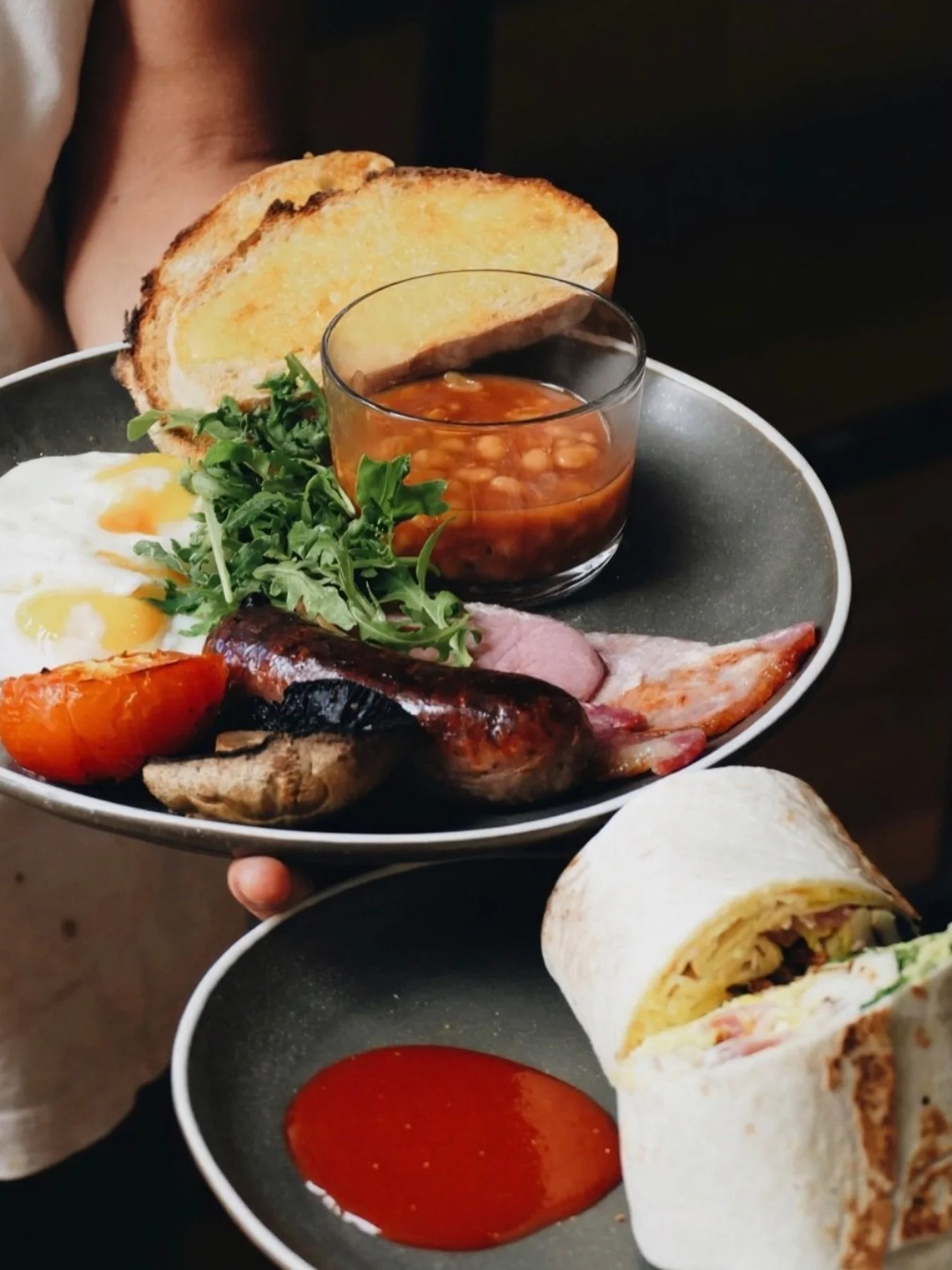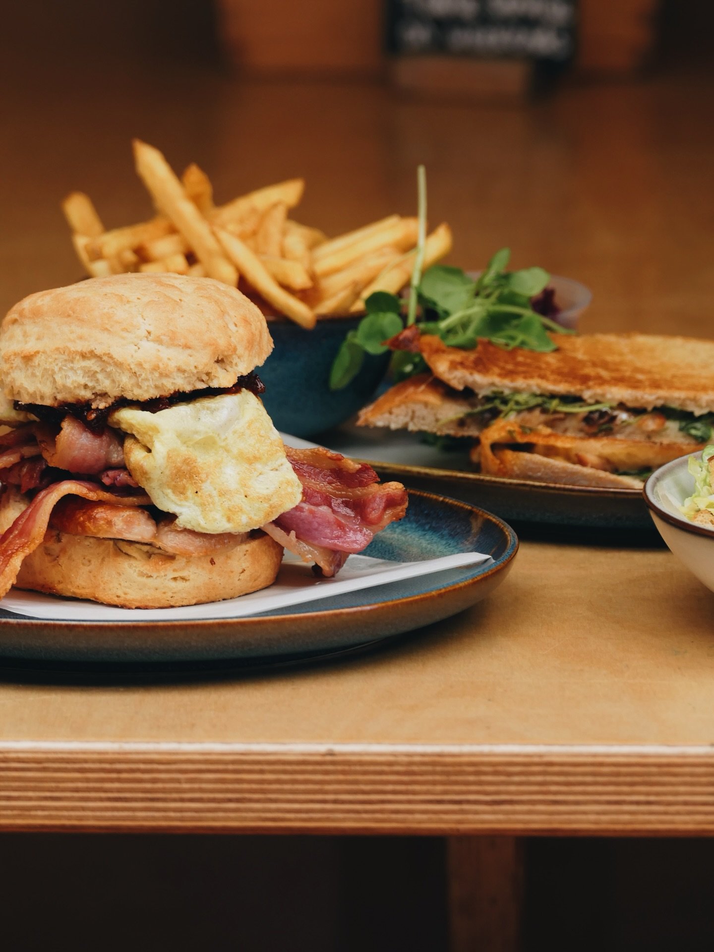 Served from 8am — 2pm, 7 days a week, includes a mix of healthy bakes and pastries, breakfast burritos, full english breakfasts, speciality toasties and more.